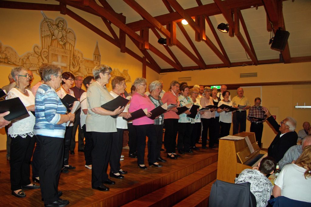 Am vergangenen Wochenende feierte die Katholische Pfarrgemeinde ihr traditionelles Pfarrfest in und um das Geschwister-Scholl-Haus. Traditionell sind auch die Auftritte der musikalischen Vereine aus Ötigheim, dem Musikverein, dem Männergesangverein und dem Gesangverein Liederkranz. Für den „Liederkranz“ hat in diesem Jahr der „Seniorenchor“ diesen Auftritt gerne übernommen.
